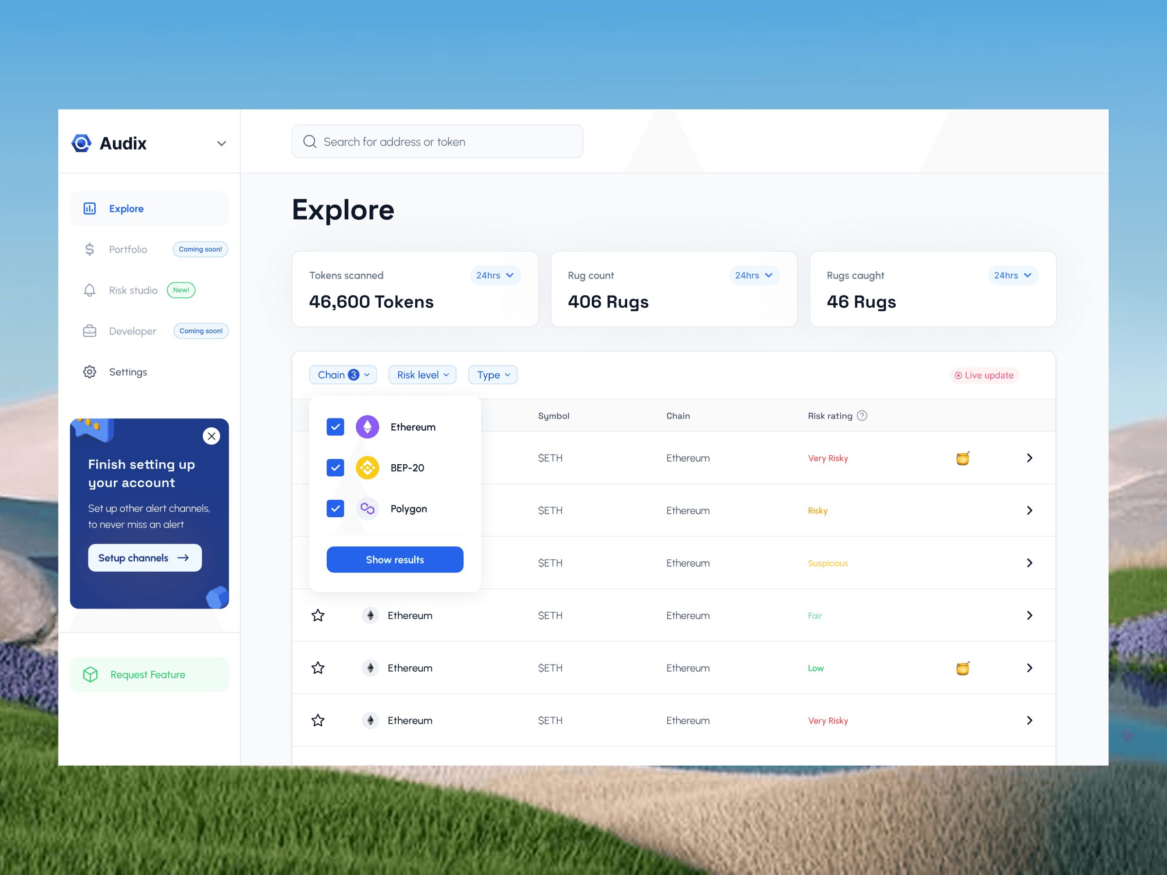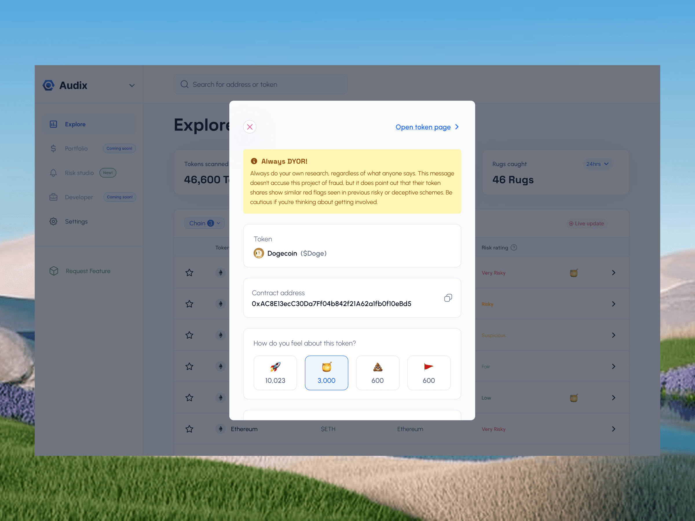 Audix is a Web3 risk intelligence platform that helps users detect rug pulls and honeypot scams before they lose funds.